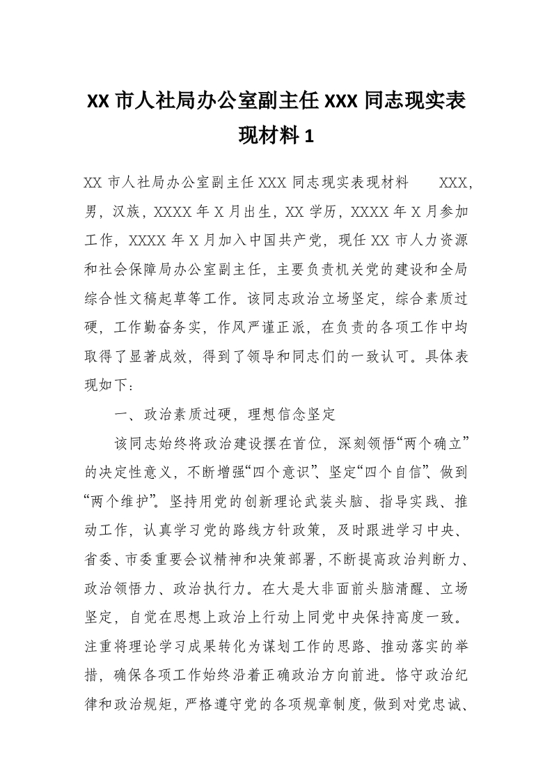 XX市人社局办公室副主任XXX同志现实表现材料1