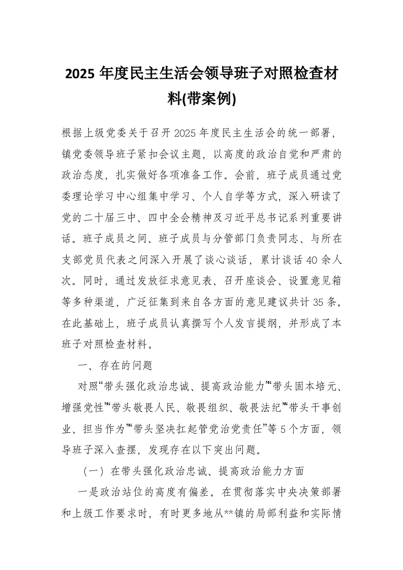 2025年度民主生活会领导班子对照检查材料(带案例)