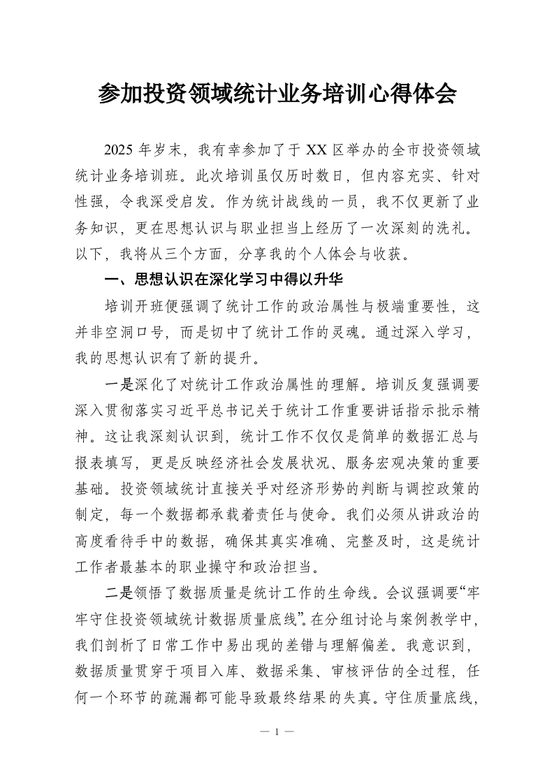 首页学习提升参加投资领域统计业务培训心得体会