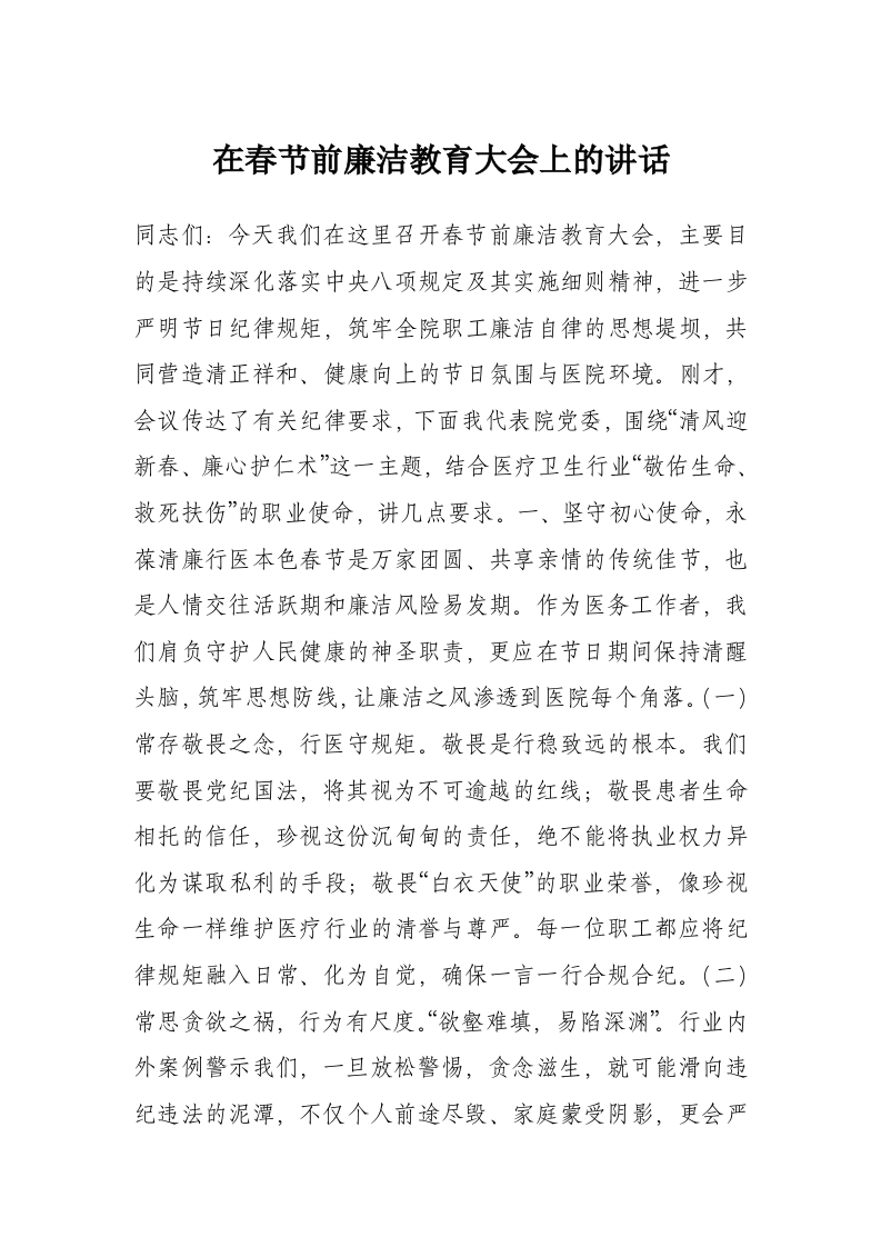 首页讲课讲稿在春节前廉洁教育大会上的讲话