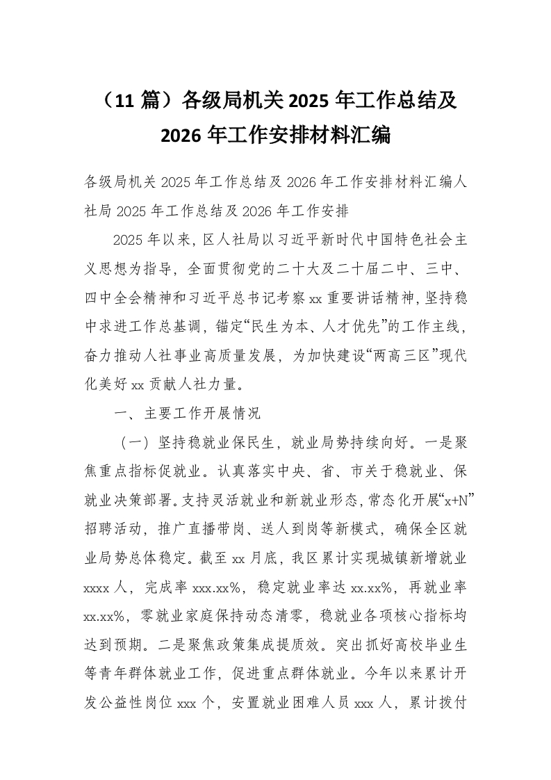 (11篇)各级局机关2025年工作总结及2026年工作安排材料汇编