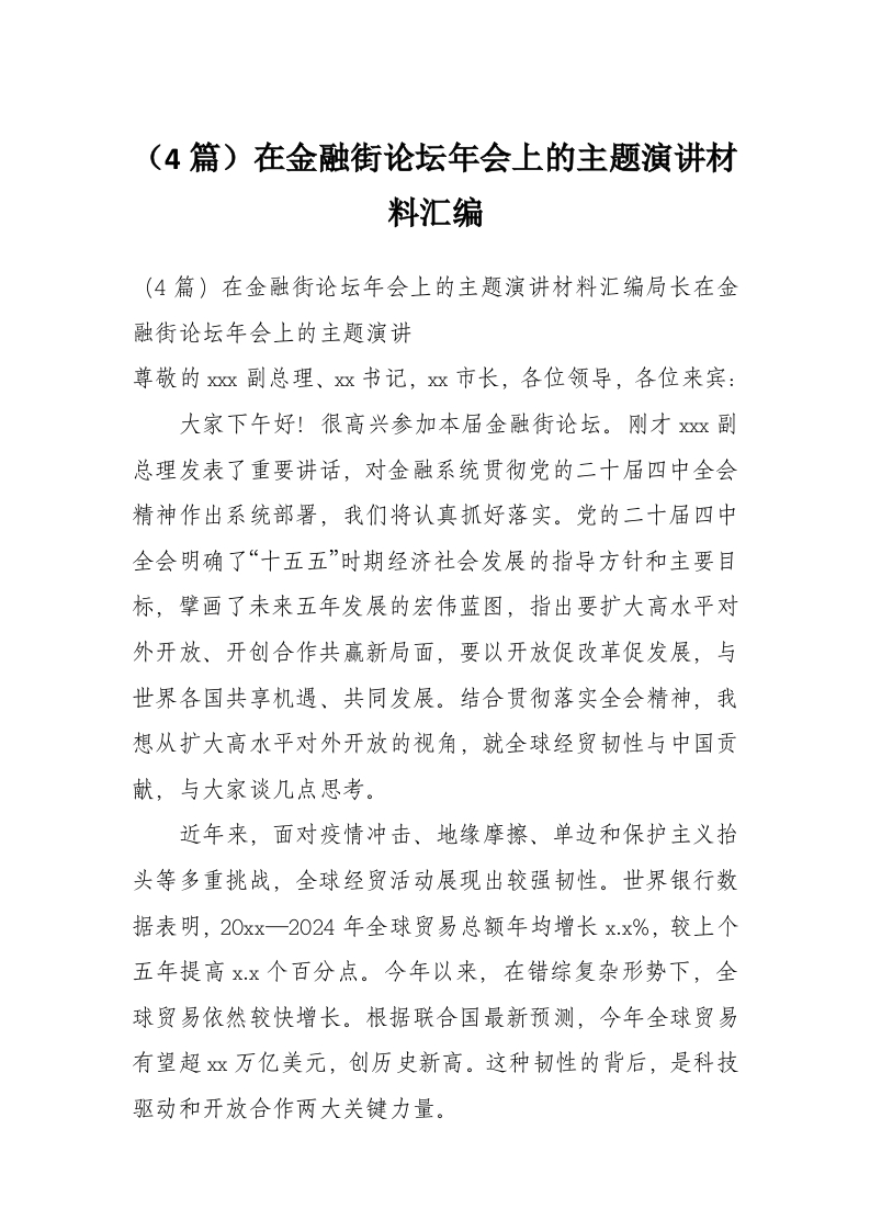 (4篇)在金融街论坛年会上的主题演讲材料汇编