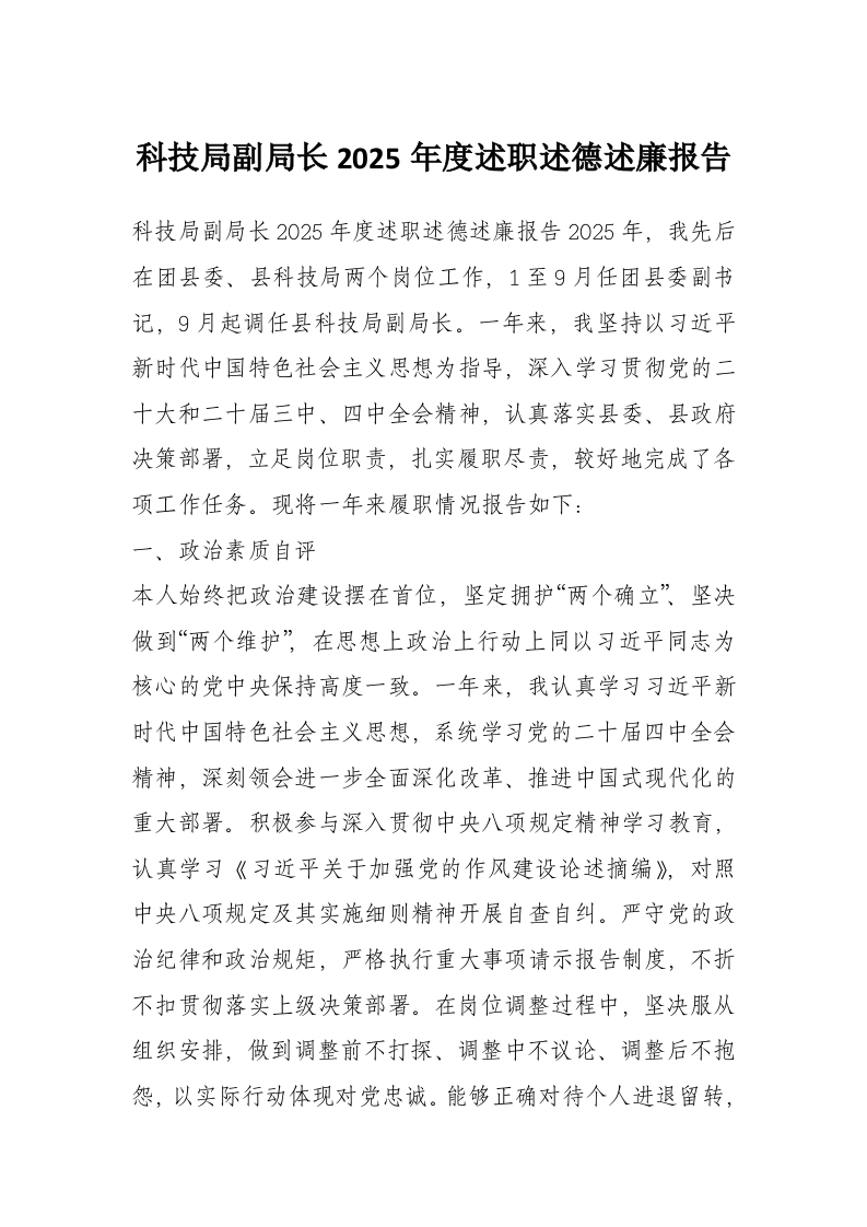 首页学习提升科技局副局长2025年度述职述德述廉报告