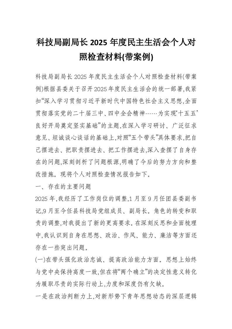 首页学习提升科技局副局长2025年度民主生活会个人对照检查材料(带案例)