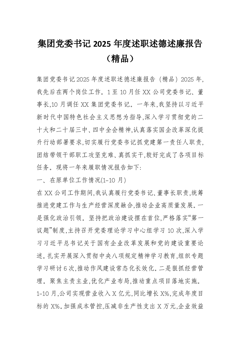 首页学习提升集团党委书记2025年度述职述德述廉报告(精品)