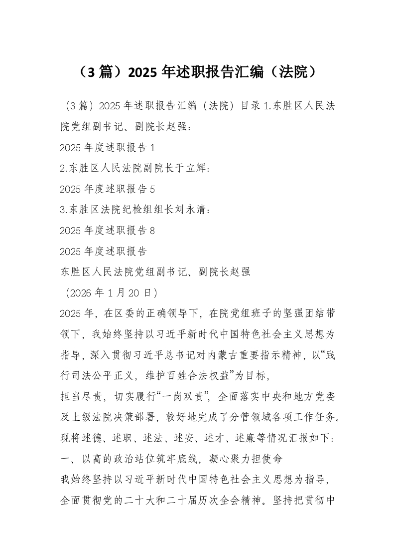 首页工作文档(3篇)2025年述职报告汇编(法院)