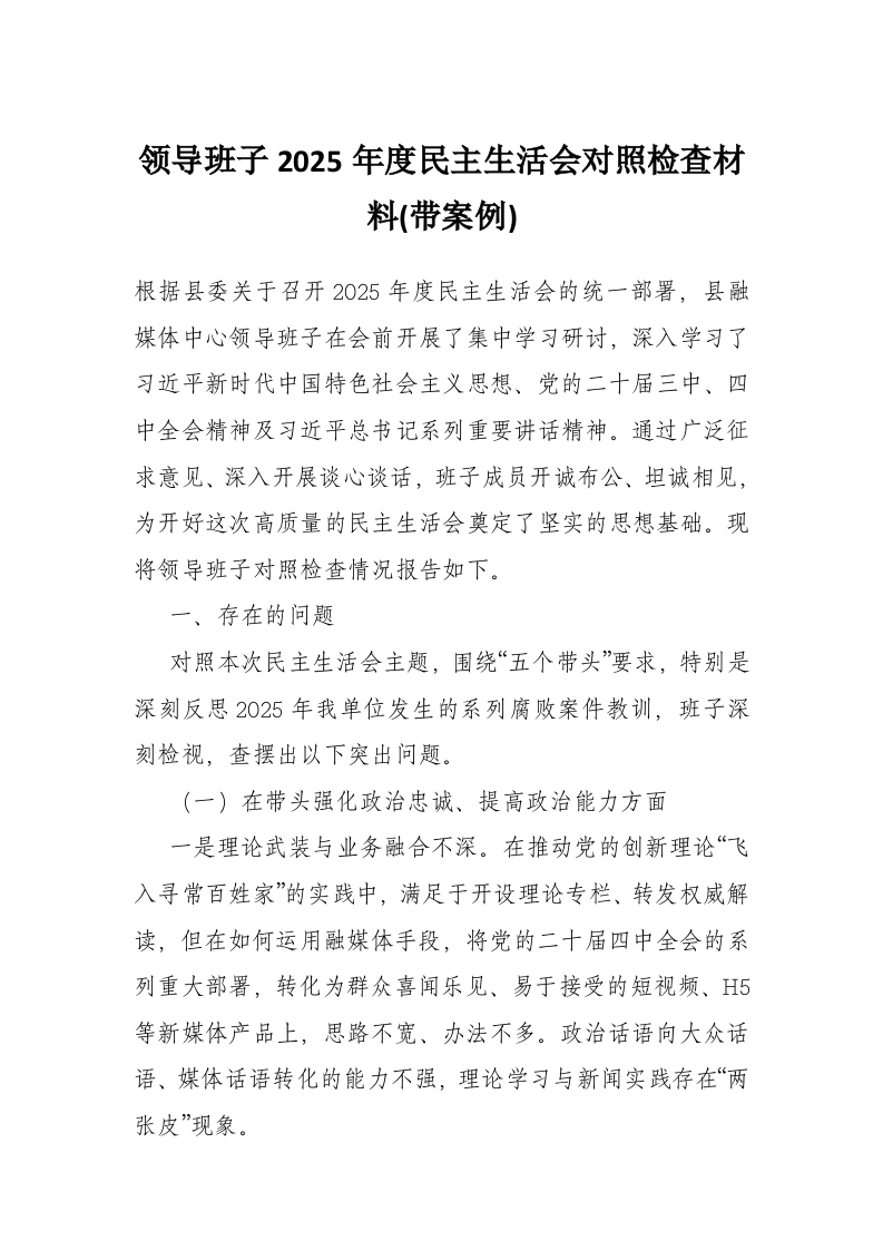 领导班子2025年度民主生活会对照检查材料(带案例)