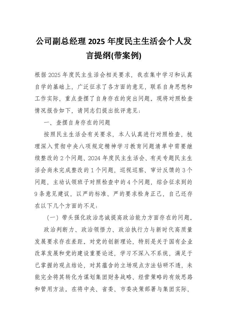 公司副总经理2025年度民主生活会个人发言提纲(带案例)