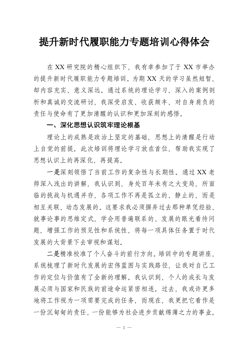 提升新时代履职能力专题培训心得体会