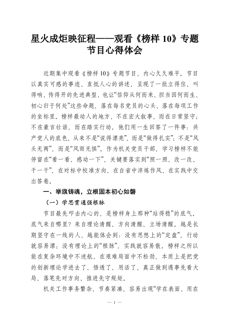 星火成炬映征程——观看《榜样10》专题节目心得体会