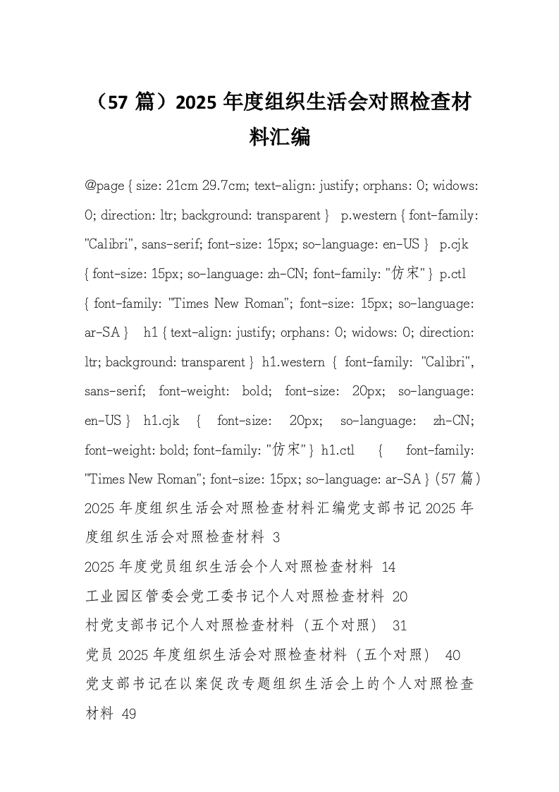 首页学习提升(57篇)2025年度组织生活会对照检查材料汇编
