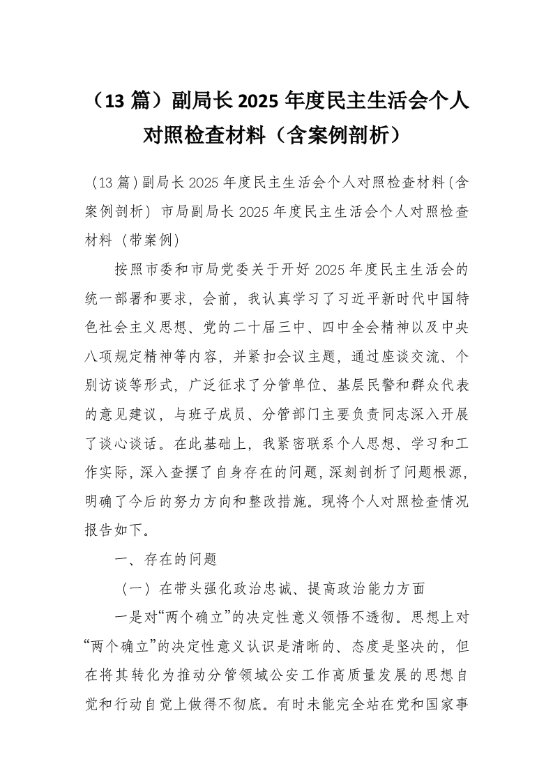 (13篇)副局长2025年度民主生活会个人对照检查材料(含案例剖析)