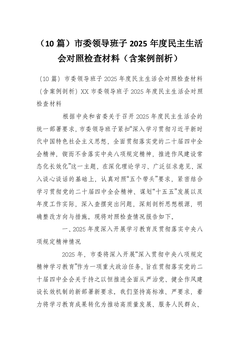 (10篇)市委领导班子2025年度民主生活会对照检查材料(含案例剖析)
