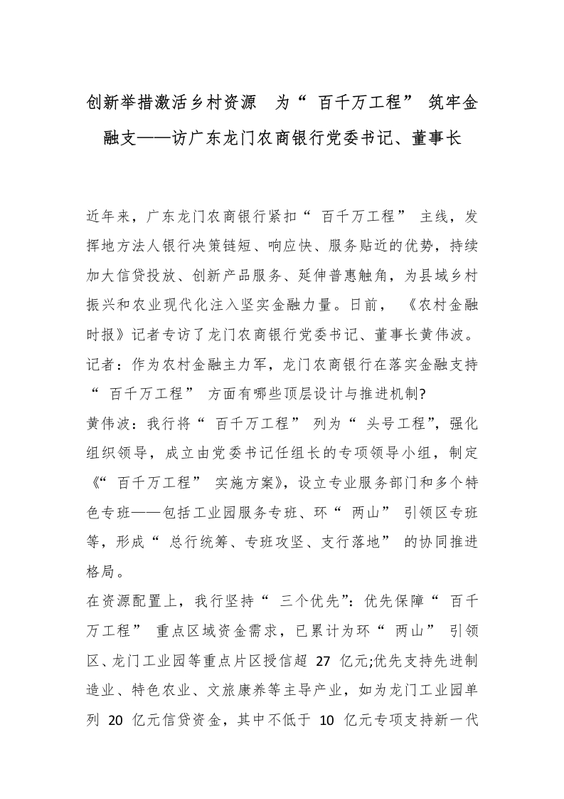 首页精选范文创新举措激活乡村资源 为“ 百千万工程” 筑牢金融支——访广东龙门农商银行党委书记、董事长