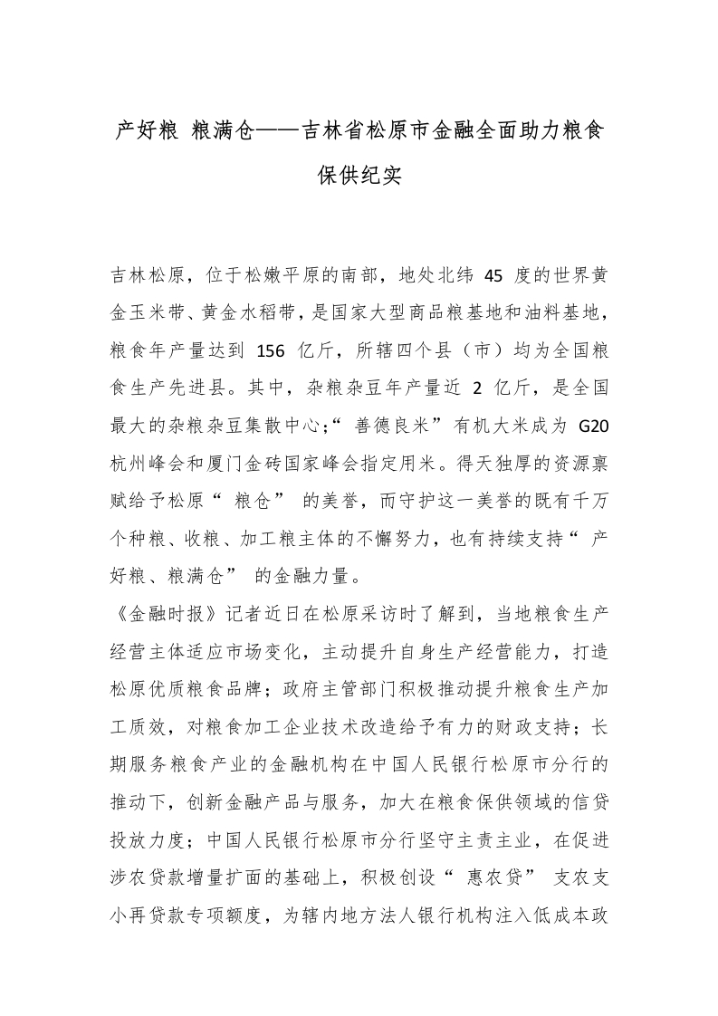 首页精选范文产好粮 粮满仓——吉林省松原市金融全面助力粮食保供纪实