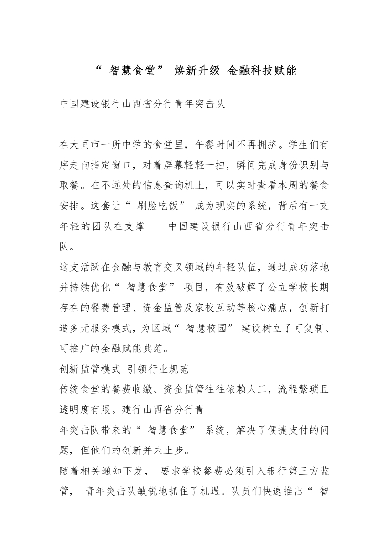 首页精选范文“ 智慧食堂” 焕新升级 金融科技赋能