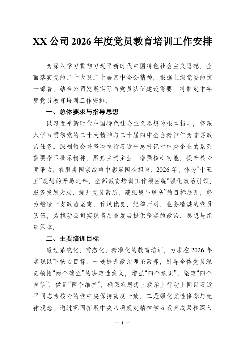 首页讲课讲稿XX公司2026年度党员教育培训工作安排