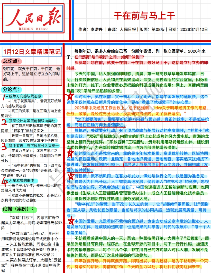 首页人民时评2026.1.12 干在前与马上干