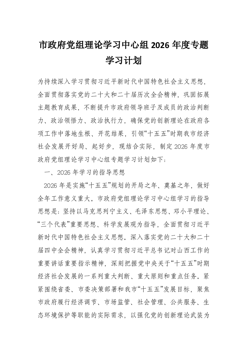 首页工作文档市***党组理论学习中心组2026年度专题学习计划