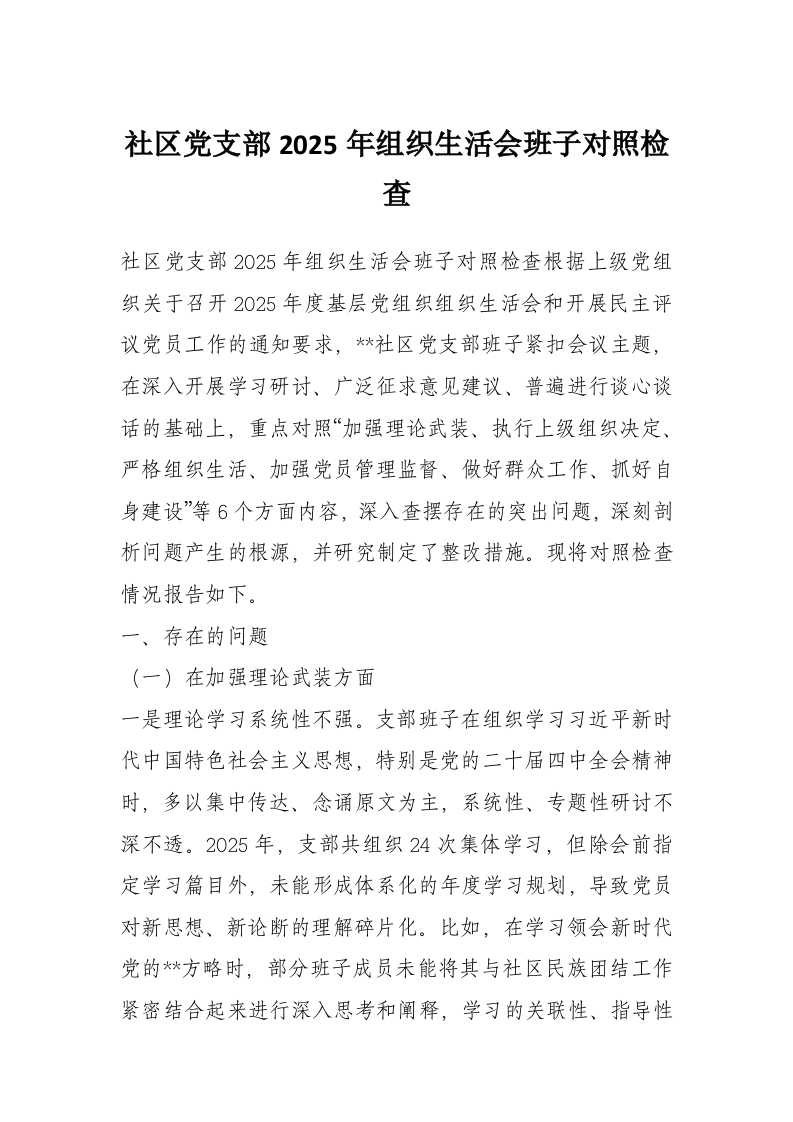 首页工作文档社区党支部2025年组织生活会班子对照检查