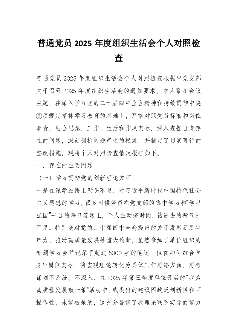 首页工作文档普通党员2025年度组织生活会个人对照检查