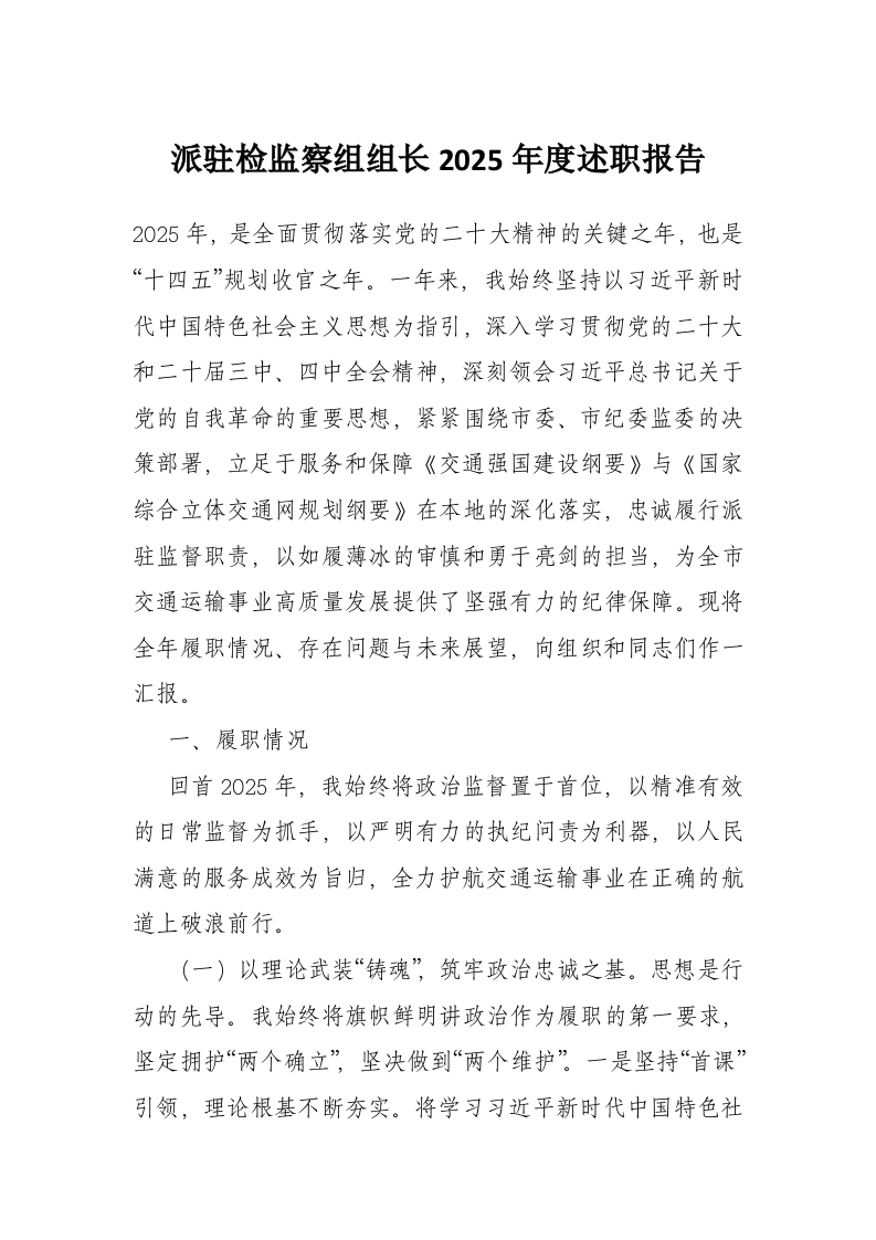 首页工作文档派驻检监察组组长2025年度述职报告