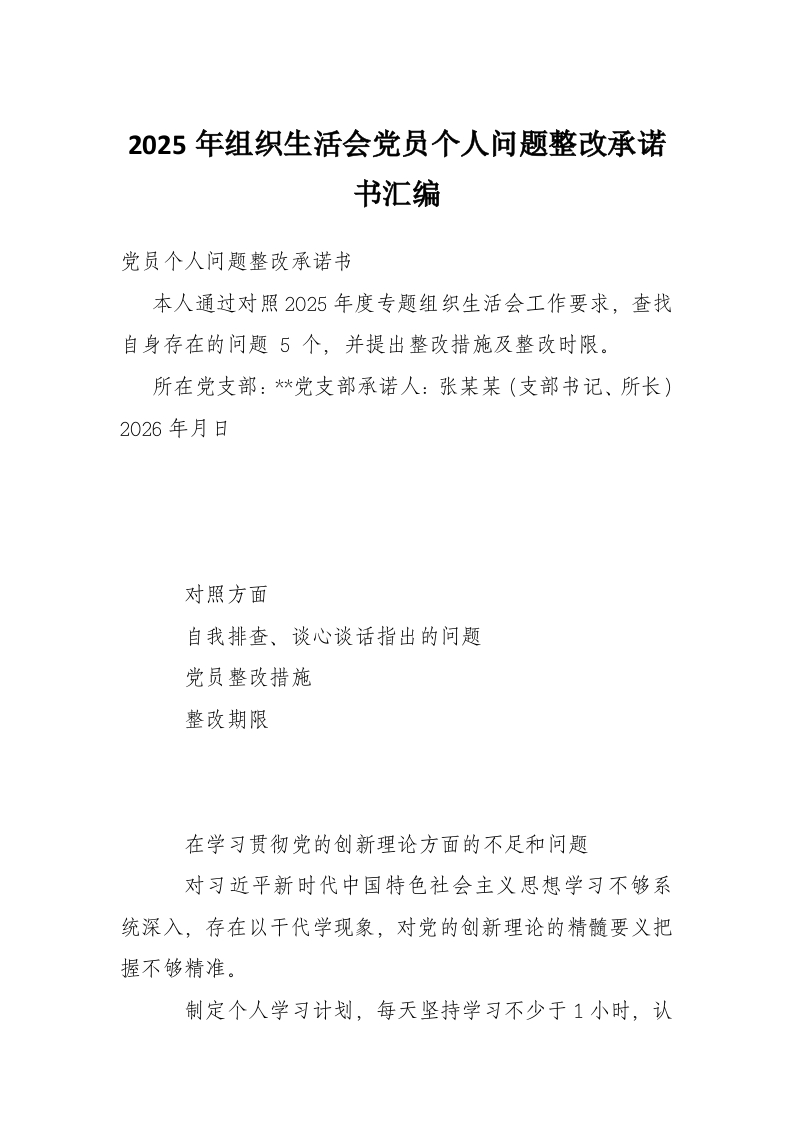 首页学习提升2025年组织生活会党员个人问题整改承诺书汇编