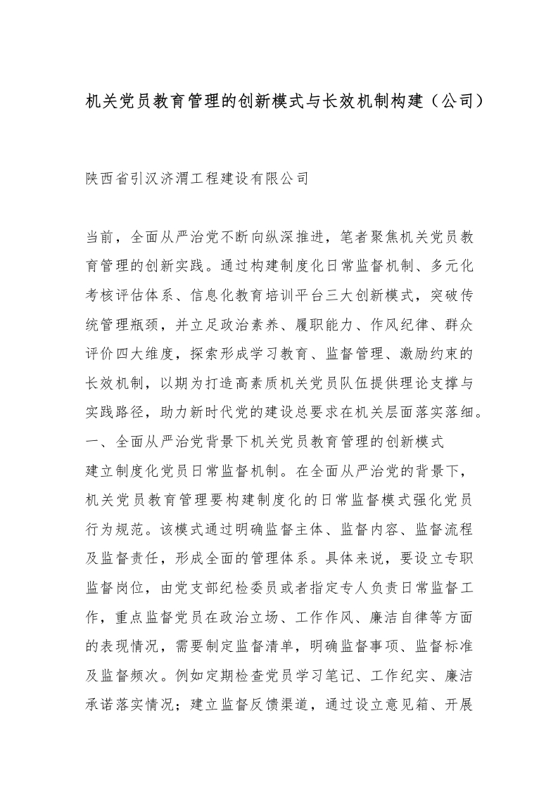 机关党员教育管理的创新模式与长效机制构建(公司)