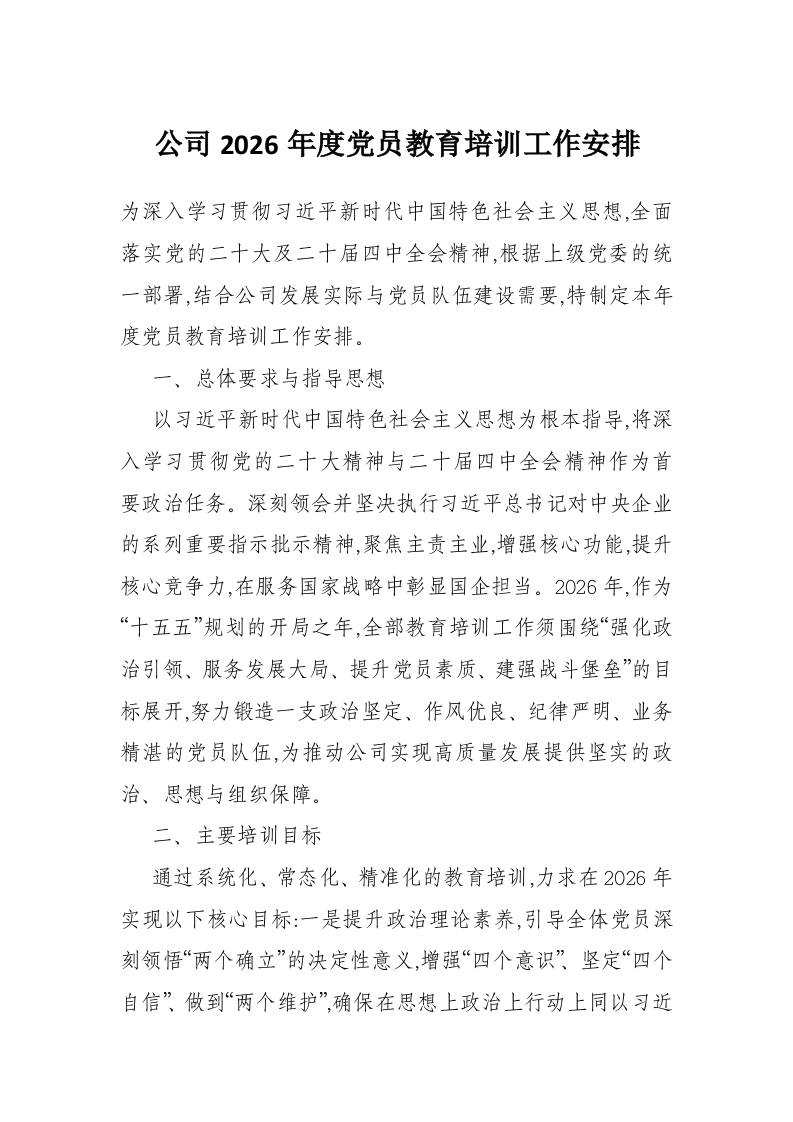 公司2026年度党员教育培训工作安排