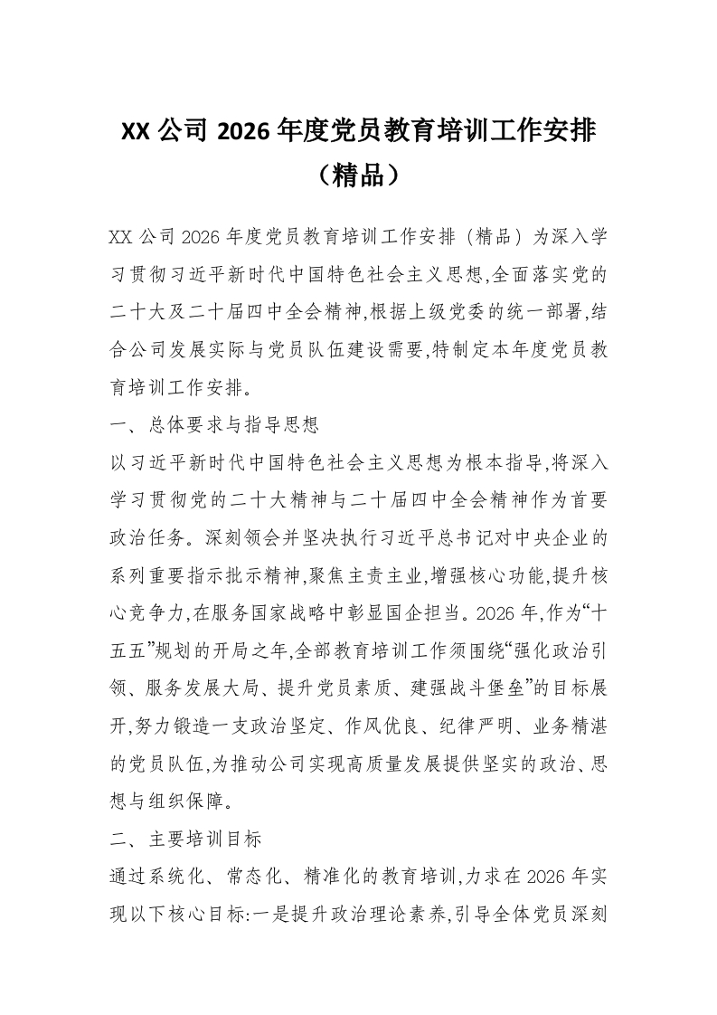 XX公司2026年度党员教育培训工作安排(精品)