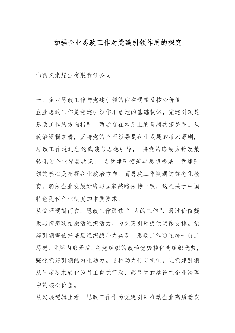 首页写作素材加强企业思政工作对党建引领作用的探究
