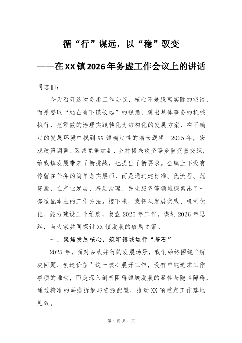 首页写作素材在XX镇2026年务虚工作会议上的讲话:循“行”谋远,以“稳”驭变