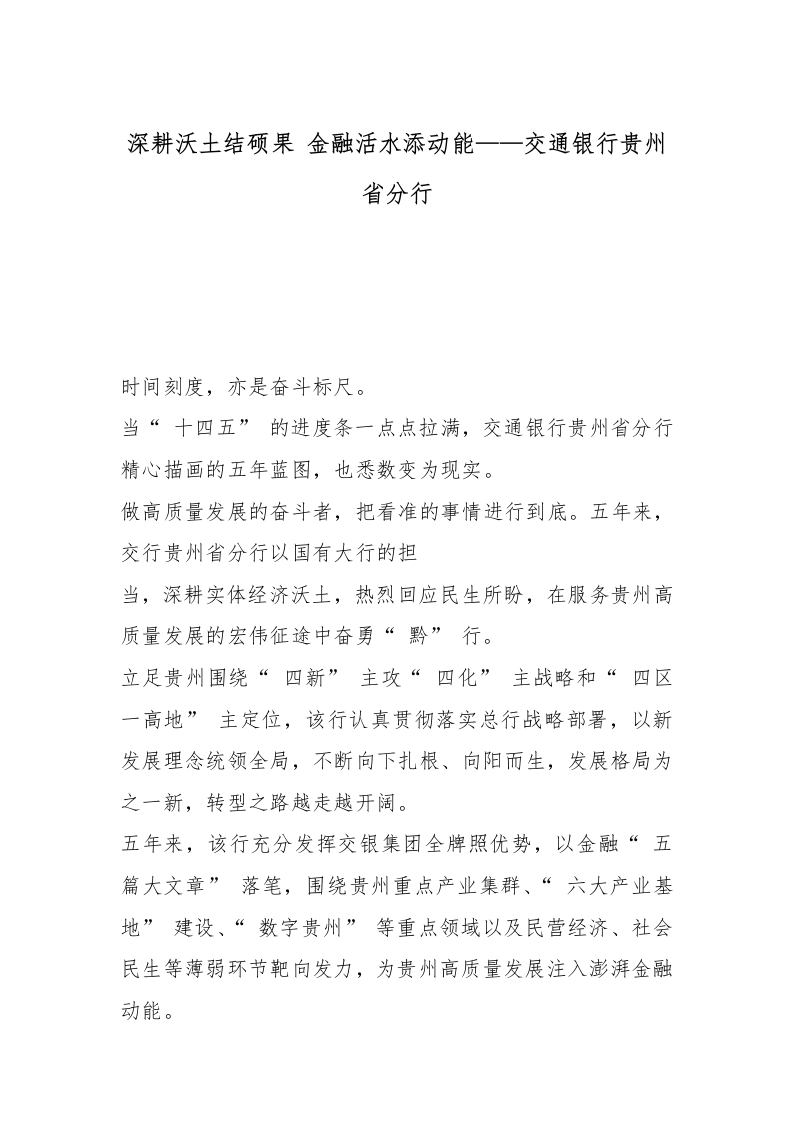 首页写作素材深耕沃土结硕果 金融活水添动能——交通银行贵州省分行