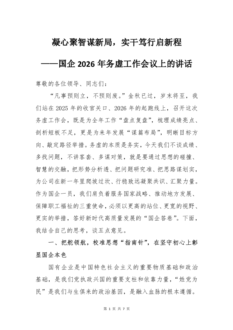 国企2026年务虚工作会议上的讲话:凝心聚智谋新局,实干笃行启新程