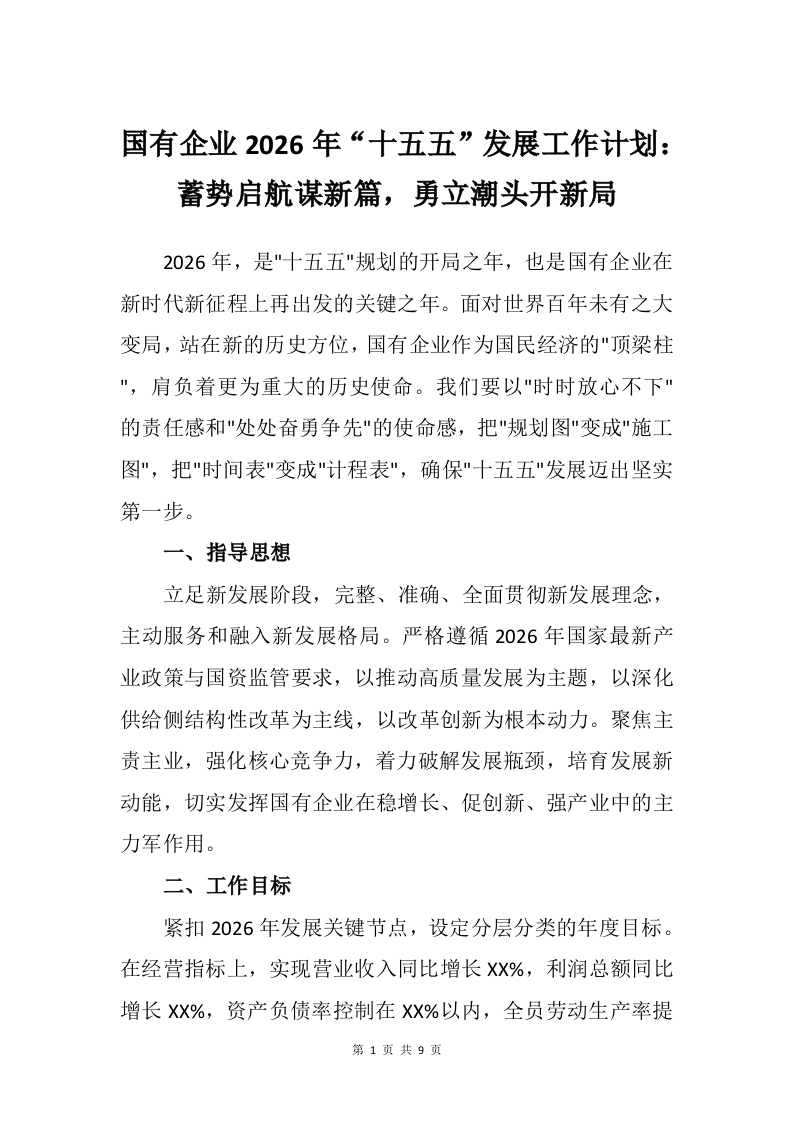 国有企业2026年“十五五”发展工作计划:蓄势启航谋新篇,勇立潮头开新局