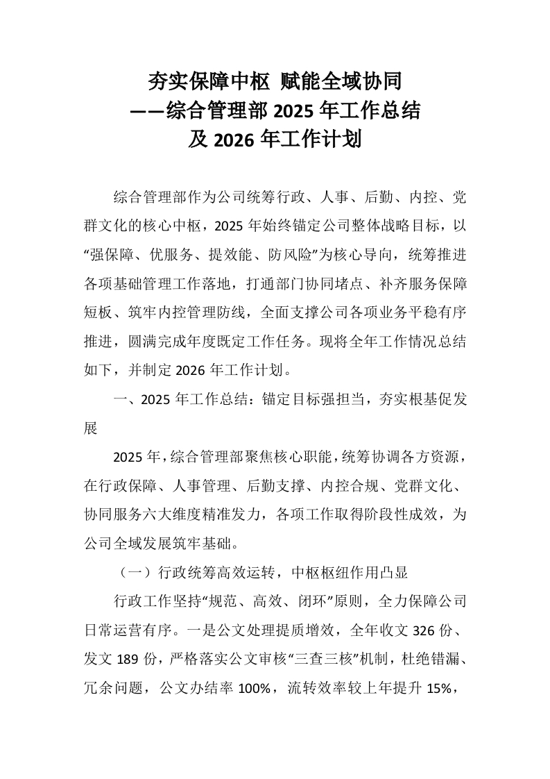 夯实保障中枢 赋能全域协同——综合管理部2025年工作总结及2026年工作计划(1)