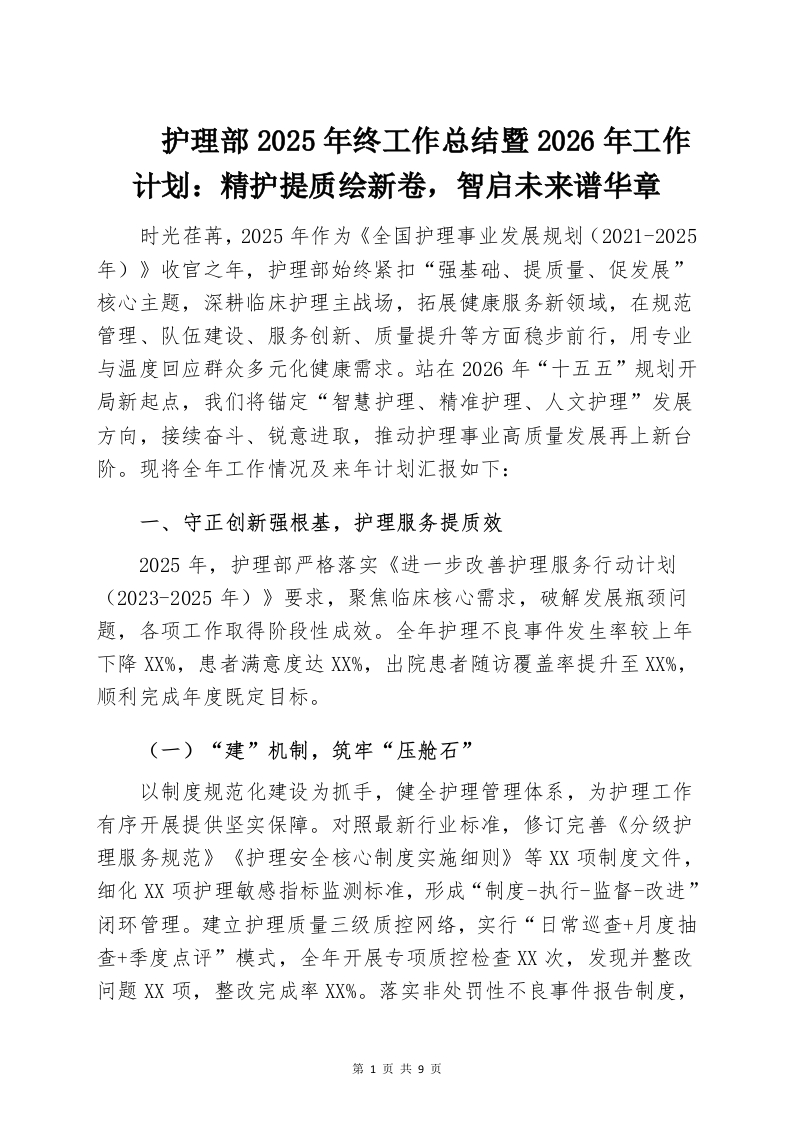 护理部2025年终工作总结暨2026年工作计划:精护提质绘新卷,智启未来谱华章