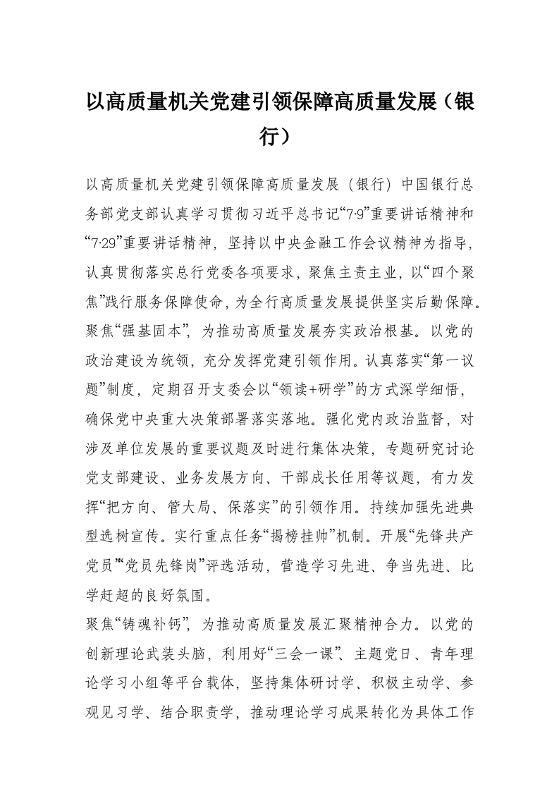 首页工作文档以高质量机关党建引领保障高质量发展(银行)