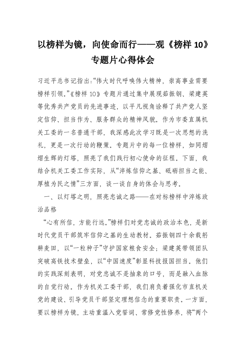 以榜样为镜,向使命而行——观《榜样10》专题片心得体会