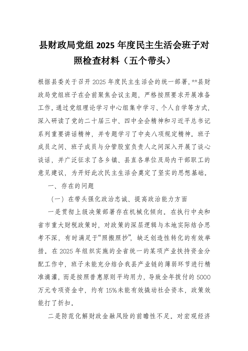 县财政局党组2025年度民主生活会班子对照检查材料(五个带头)
