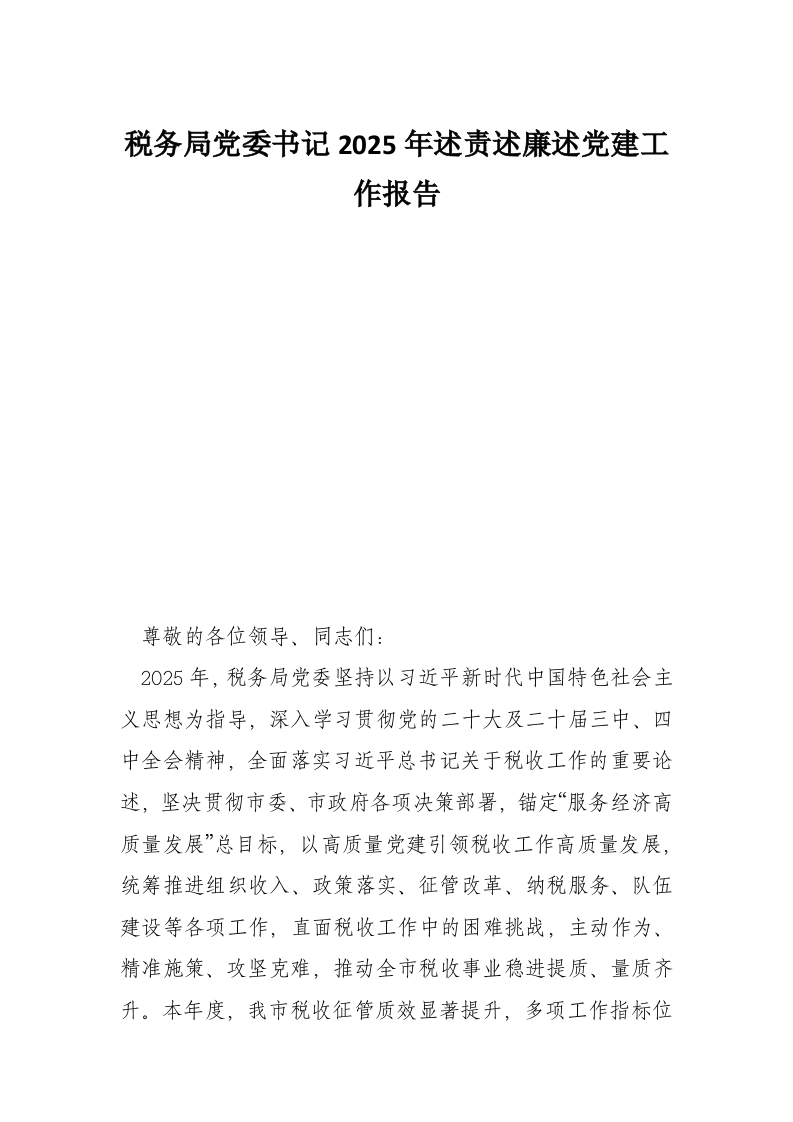 首页工作文档税务局党委书记2025年述责述廉述党建工作报告