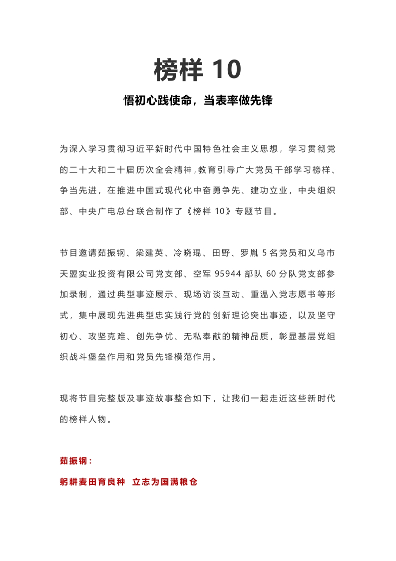 红色大气《榜样10》PPT悟初心践使命 当表率做先锋课件下载(讲稿)