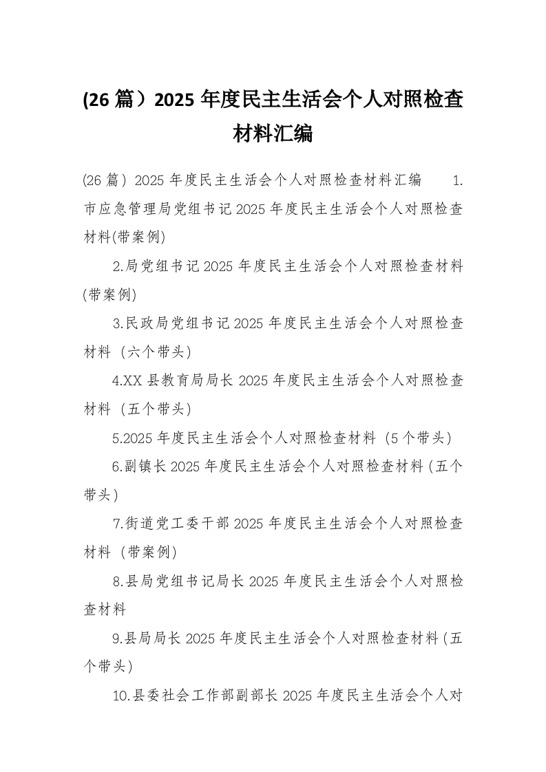 (26篇)2025年度民主生活会个人对照检查材料汇编