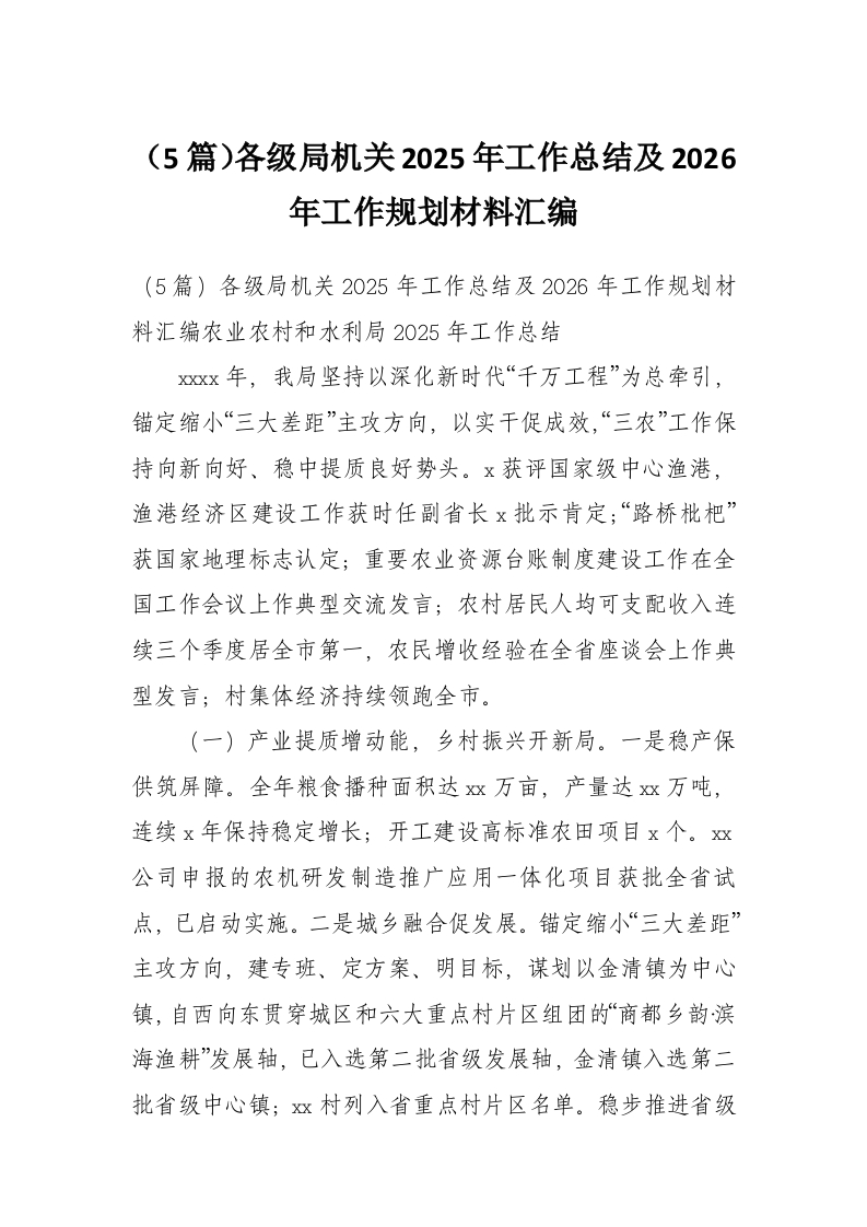 (5篇)各级局机关2025年工作总结及2026年工作规划材料汇编
