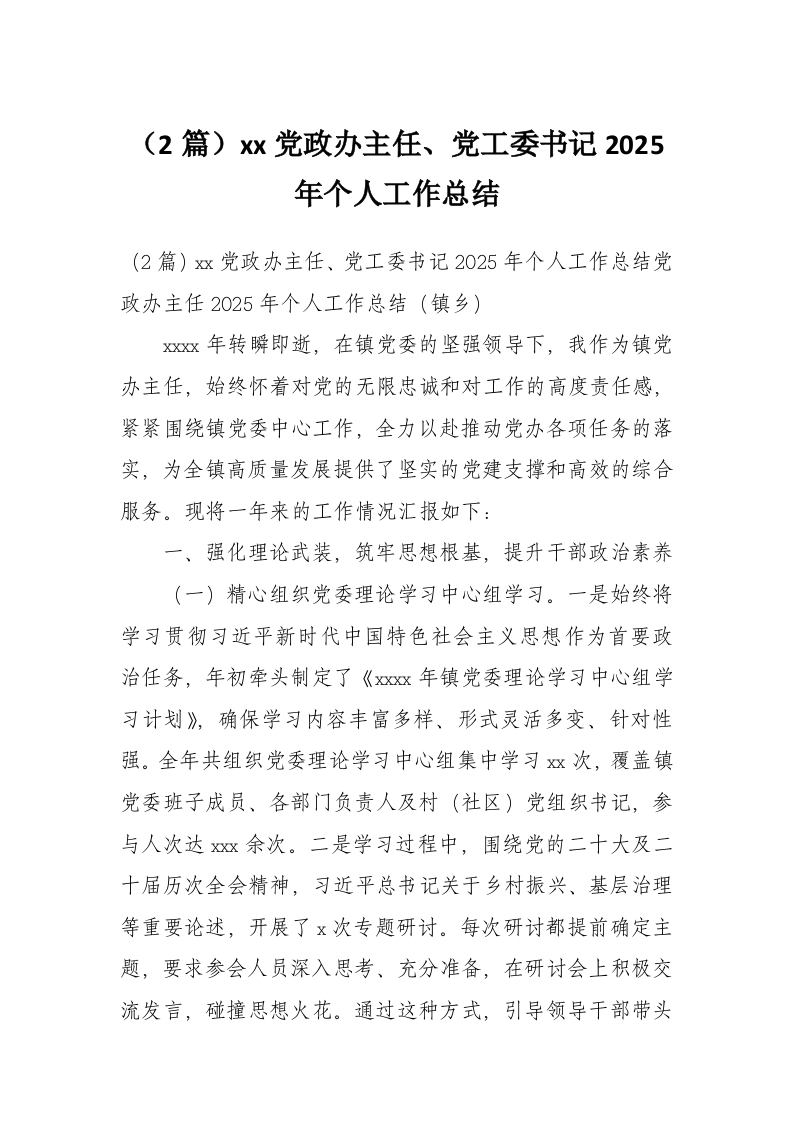 (2篇)xx党政办主任、党工委书记2025年个人工作总结
