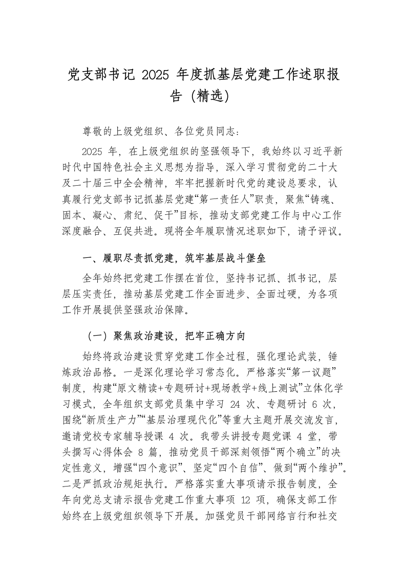 党支部书记2025年度抓基层党建工作述职报告(精选)