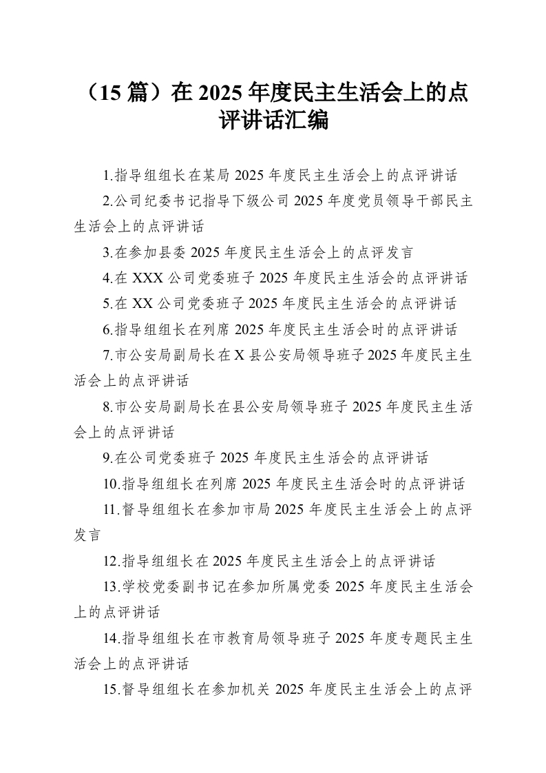 (15篇)在2025年度民主生活会上的点评讲话汇编