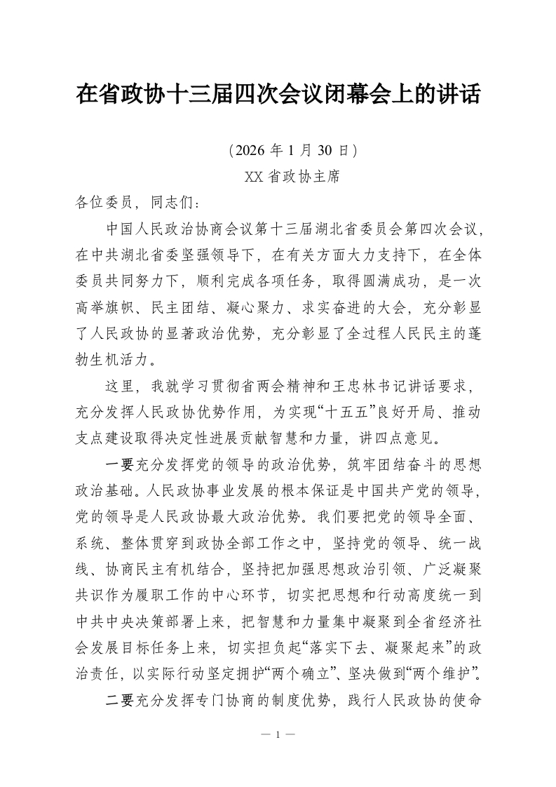 在省政协十三届四次会议闭幕会上的讲话