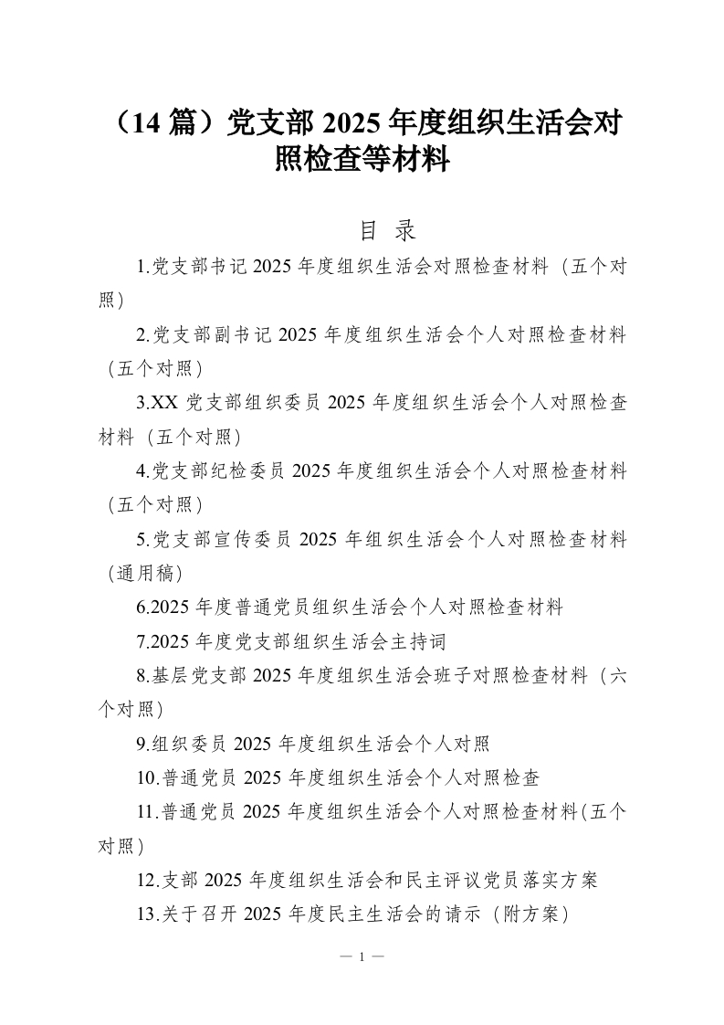 (14篇)党支部2025年度组织生活会对照检查等材料