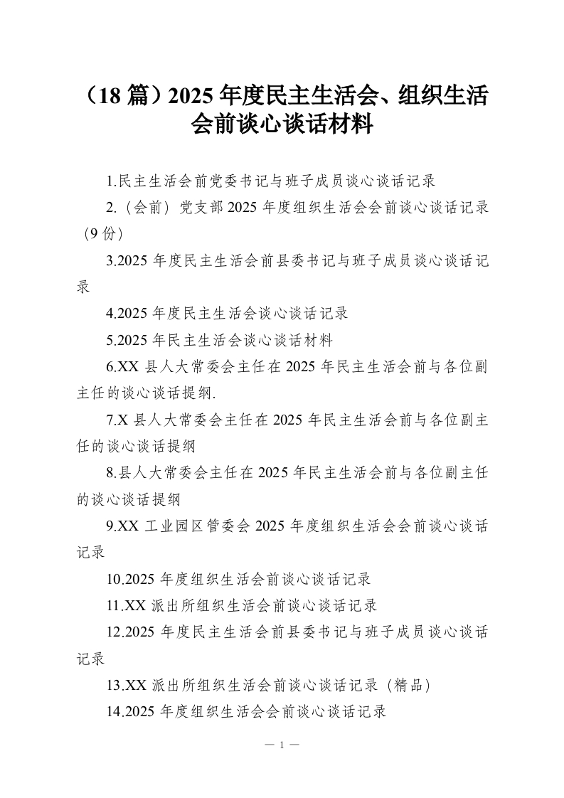 (18篇)2025年度民主生活会、组织生活会前谈心谈话材料
